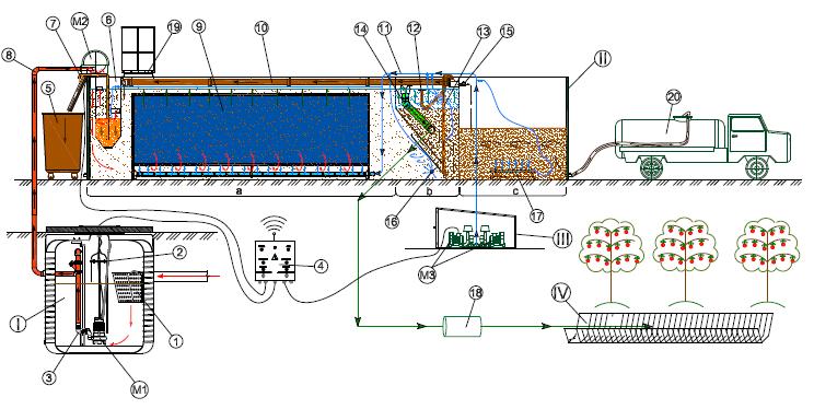 I - Канализационная насосная станция II - СОСВ контейнерного типа